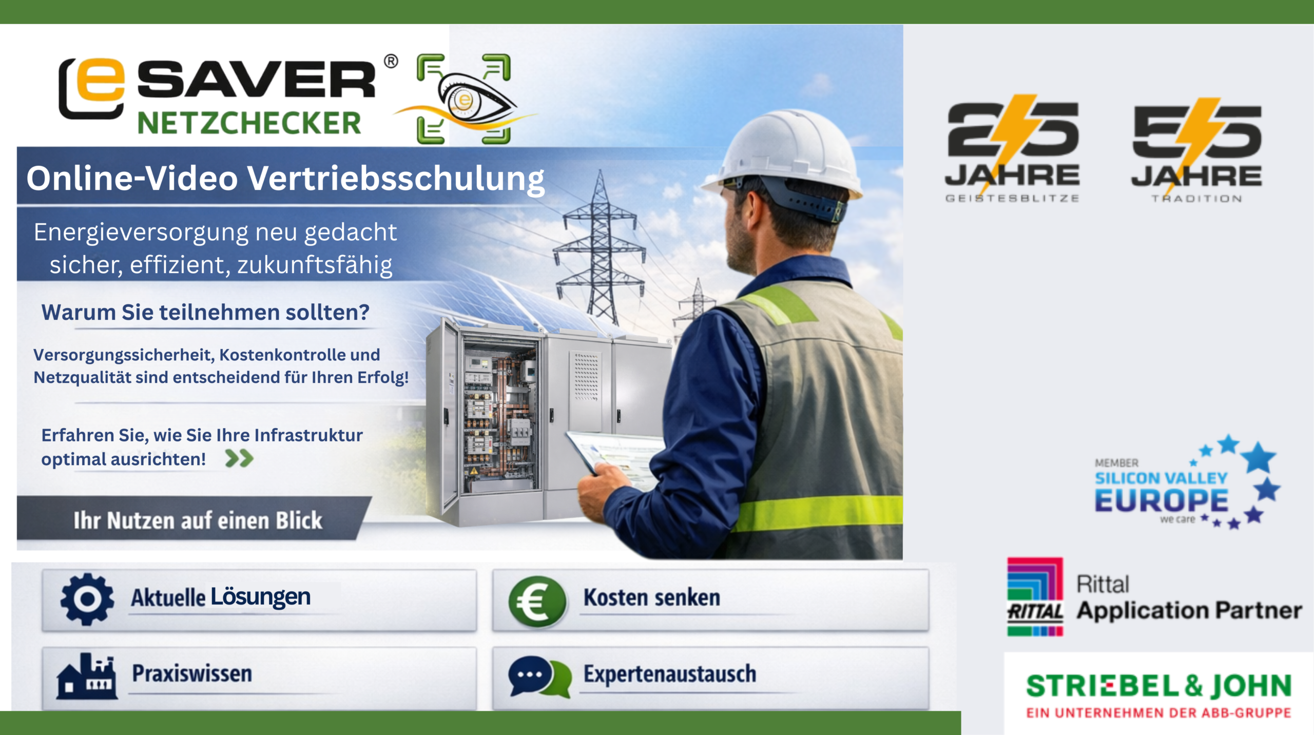 Wir laden Sie herzlich zu unserer Online Video Schulung ein. Inhalte Unternehmensvorstellung Vorstellung der eSaver GmbH, eSaver Schaltanlagen GmbH Überblick über das Unternehmen Produkte und Dienstleistungen Technische Präsentation Produkterklärung des ... Weiterlesen